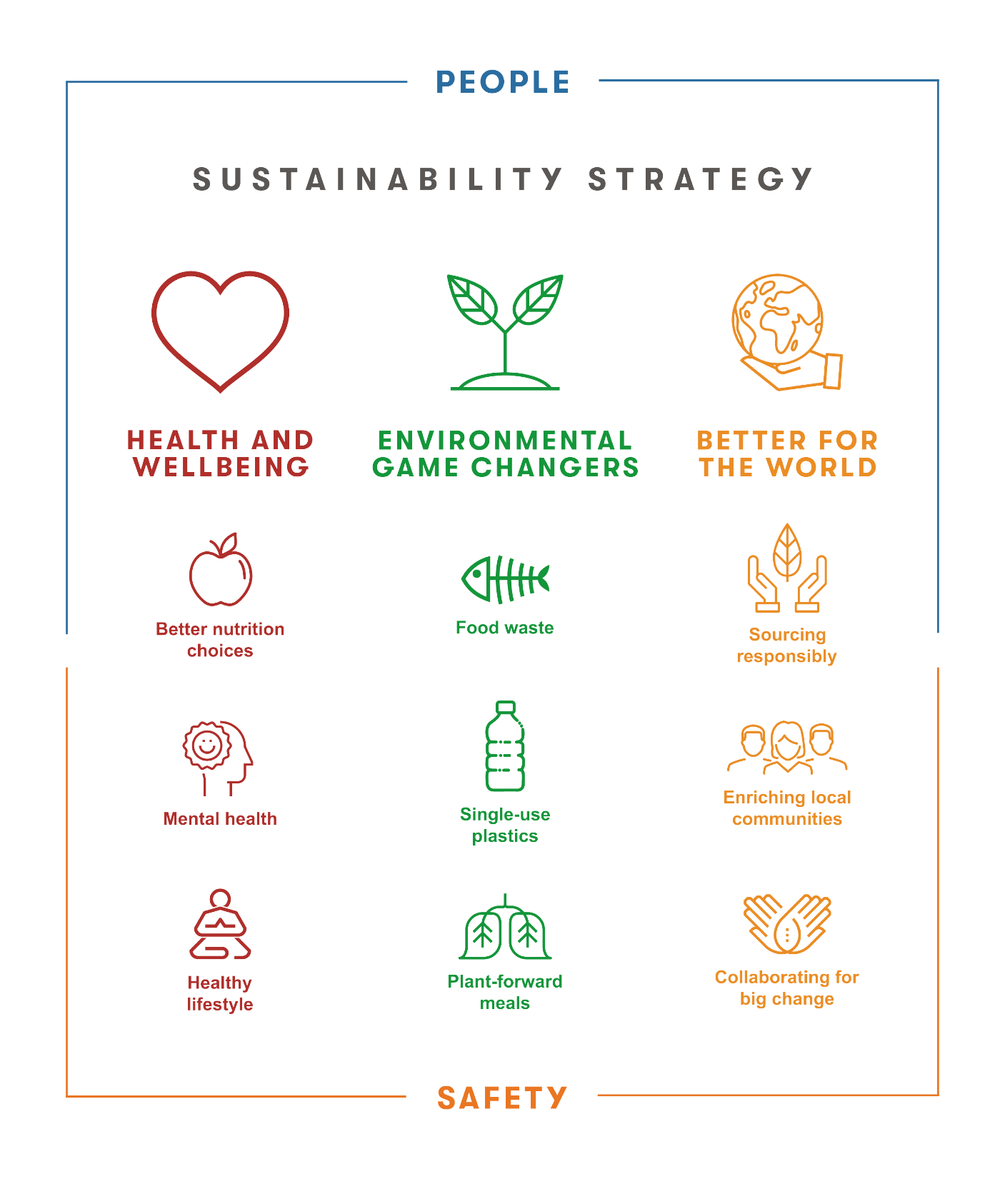 Sustainability is crucial to business. People are increasingly mindful of the connection between what they eat and their health, as well as the health of the planet with employees wanting to work for a company with a purpose. Our strategy, announced in 2018, recognises the importance of sustainability with People and Purpose two of our three key strategic priorities.