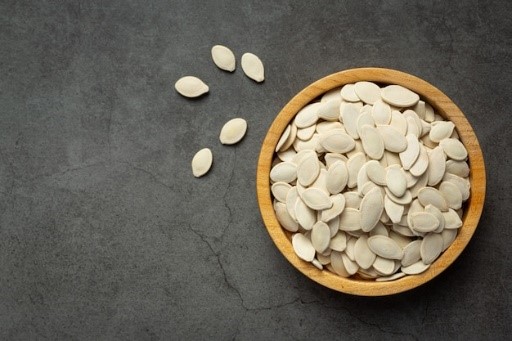 Pumpkin seeds are not only good sources of manganese and copper like the flesh, but they are also rich sources of iron and magnesium. Magnesium is a mineral that plays an important role in regulating our hormones which affects our mood. Studies have shown individuals with a low magnesium level have a higher risk of depression.